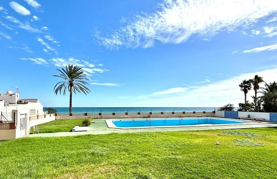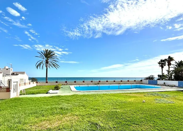 寝室1室のApartamento Aguadulce ロケタス・デ・マルは、ロケタス デ マル水族館から3キロメートルくらいに位置し、プールを提供しています。